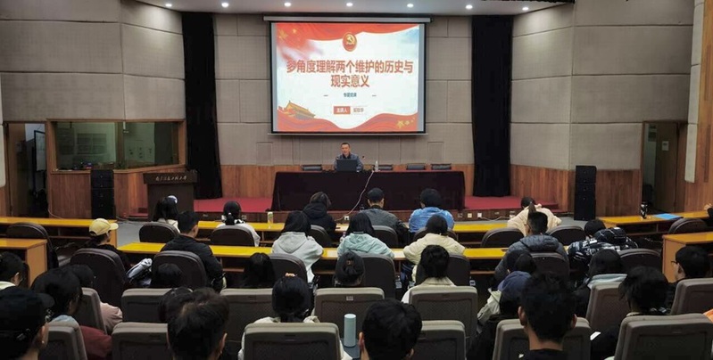 11月15日,生态与应用气象学院副书记、副院长奚桂华在长望楼N102报告厅为入党积极分子阐述《多角度理解“两个维护”的历史与现实意义》。奚桂华指出,“两个维护”是坚持和加强党的建设的要求,是对历史经验的深刻总结,也是现实国际形势下国家发展和民族复兴的必然选择。做到“两个维护”要坚决抵制狭隘的片面理解和脱离中国实际的历史虚无。同时,他希望各位入党积极分子进一步加强思想政治学习,增强“四个意识”、坚定“四个自信”、做到“两个维护”,认真领会习近平新时代中国特色社会主义思想的精髓和实质,努力在各自的人生道路上谱写出不愧于新时代的壮美篇章。