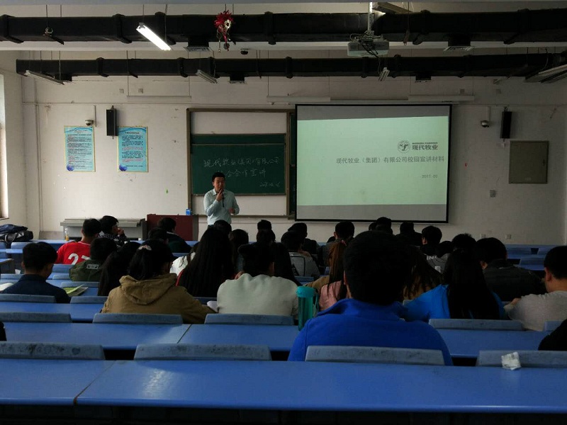 2017年4月6日下午14:00,动物医学院于一号楼合401教室,举行“现代牧业储备人才班”宣讲会。本次宣讲会邀请现代牧业有限公司人力资源部主管李强经理,为同学们介绍公司的企业文化以,及本次校企合作班的招收对象和要求。