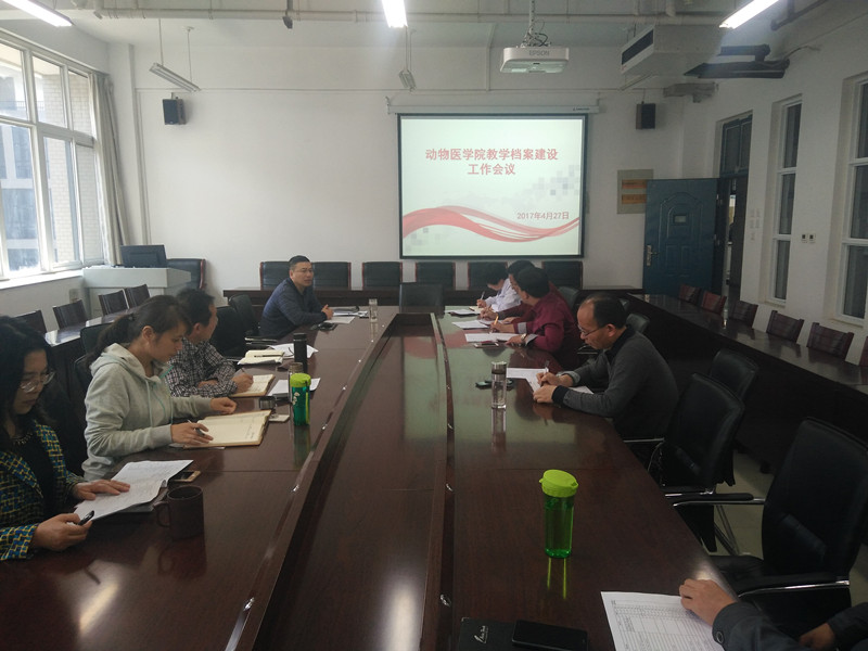 2017年4月27日下午,动物医学院在生工组团C401召开了教学档案建设工作会议。参加本次会议的人员有学院各教研室主任、实验教学中心主任、教学秘书、科研秘书、办公室主任、团总支书记。会议由副院长宋予震主持。