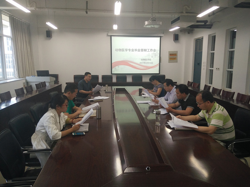 2017年5月10日上午,我院在生工组团C401召开了2017届动物医学专业毕业论文答辩工作会。会议由宋予震副院长主持,院教学秘书吴玉臣和全体教研室主任参加了会议。