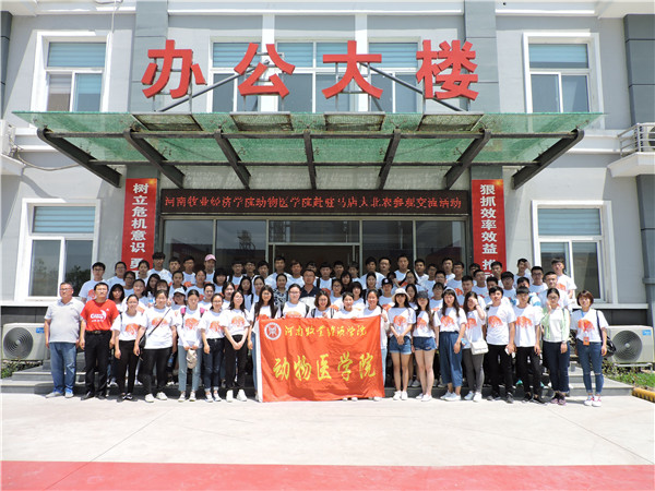 师生一行抵达科技园后,首先由大北农集团驻马店科技园基地总经理黄梦川致辞,他对我院师生的到来表示热烈的欢迎,表示此次活动意义非凡,并合影留念。
