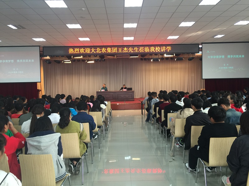 活动伊始,王经理首先对17级的新同学进入人生新阶段表示祝贺,接着王经理介绍了大北农集团的组织架构与相关专业的联系,从世界畜牧业发展的前景、畜牧业变革和发展空间解析了相关行业的人才需求。王经理鼓励同学们把握年轻的资本,做好职业生涯规划,树立正确的价值观,扎实专业理论知识,与时代同行,与理想为伴,努力为我国畜牧行业贡献自己的力量。最后,我院党总支副书记张瑞春指出,王经理用朴实无华的语言,结合自身的经历给同学们作了一场生动、精彩的励志教育报告会,对同学们在校期间的学习规划以及职业发展方向都具有指导性意义。