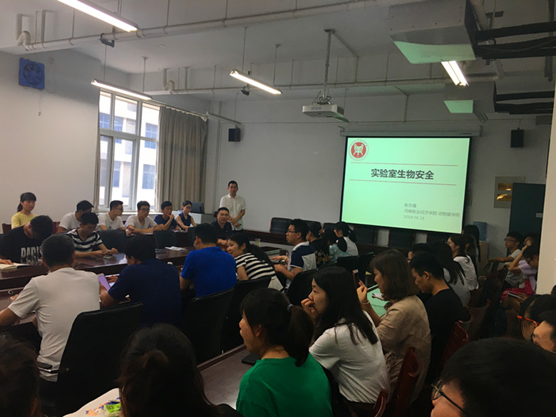 2018年6月21日中午,动物医学院在生工组团C401会议室举办了实验室安全教育培训会。本次培训会主要面向我院实验员教师、各科研实验室负责人、开展科研试验的教师、学生助理实验员和参与教师科研项目的学生助研,共计80余人参加了培训会。会议由副院长宋予震主持。