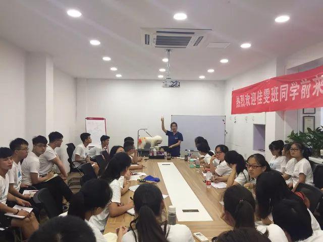 烈日炎炎也挡不住学习的热情,霍老师一行36人到达浙江佳雯宠物医院之后,佳雯宠物医院副总经理王国辉为同学们组织安排了为期两天的岗前培训。佳雯宠物医院创始人谢作缎给学生分享了佳雯创业之路,及未来佳雯合伙人创业计划和员工持股的的战略思想,深度剖析了宠物经济发展热潮,鼓励同学们在实习期间将理论转为实践,以学习为核心、以工作为践行的人才培养机制。