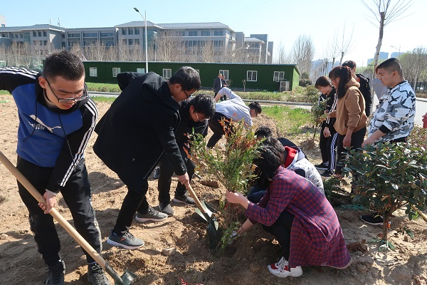 当天十二点半,18级宠物01班,18级兽医01、02、03班的同学们刚下课,就在辅导员付文凯老师的带领下,带上植树工具,来到了校北门西边的空地上。分拣树苗、花枝,抡锄挖坑,手扶树苗,挥楸培土,志愿者们分工合作,热火朝天,各个环节衔接有序,配合默契。大家干劲十足,脚上、裤腿上都沾满了泥土,但劳动的快乐洋溢在脸上,一个半小时很快过去了,一万多颗四季青和月季都在这片空地上找到了自己的位置,迎风摇曳,为校园增添了勃勃生机。看着自己亲手种植的一棵棵象征希望的树苗,很多同学都激动地掏出手机,记录下这难忘的经历。参加植树活动的志愿者说:“植树节不仅仅只是一个节日,最重要的是要引起我们植绿、爱绿、护绿的意识。植树不易,护绿更难。”