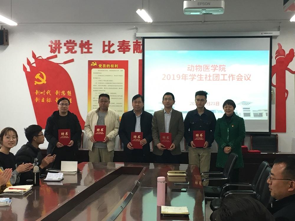 会上,全体起立奏唱国歌,之后王宏魁宣读了《动物医学院学生社团管理办法》,一一介绍了社团指导教师。王书记对新聘任的指导教师表示衷心的祝贺和感谢,并为指导教师颁发了聘书。王书记指出,社团活动能够丰富校园生活,对学生培养兴趣爱好、提高社会认知、综合能力以及促进学习交流具有重要的作用。王书记强调,一要加强联系沟通,多探讨社团工作,确保社团管理的规范化;二要创新社团活动,增强活动的吸引力和实效,充分发挥学生社团在教育教学中的重要作用,把立德树人根本任务落实在社团活动中,最后要求,在社团活动开展中要做好政治安全、人身安全、生物安全等安全保障。
