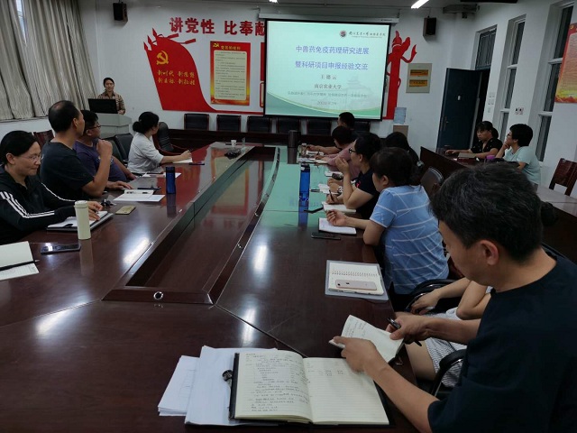 王德云教授结合自己多年的科研经历,围绕中兽药免疫药理研究进展暨科研项目申报经验进行汇报交流,重点讲授了中药成分脂质体的免疫增强作用及其作用机理的研究,涉及到疫苗免疫增强剂的重要性、兽用疫苗佐剂的研究现状、中药成分疫苗免疫增强剂的应用、中药成分脂质体的制备、质量评价、中药成分脂质体的免疫增强作用等内容。接下来又与大家分享了国家自然基金的申报经验,结合实例讲授了申报过程中应该注意的事项,申报书各部分的书写要求,最后强调项目申报要早动手、多查资料、反复检查修改。讲授内容都对老师们申报各类科研项目很有帮助。