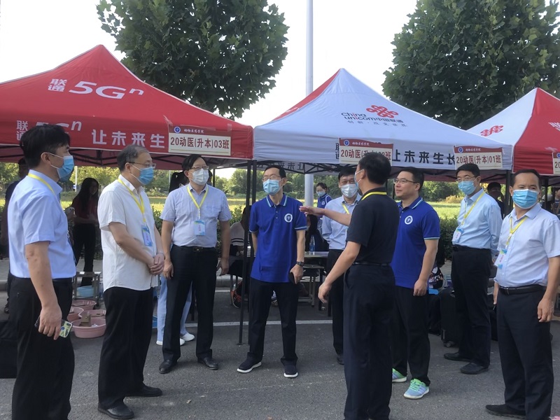为了确保我院迎新工作高效有序进行,做到让学生满意,家长放心,让新同学真正感受到如家般的温暖。在学院党委的统一部署下,学院团委、学生会充分准备、统筹兼顾,全力做好迎新工作。迎新期间,学校党委书记穆瑞杰一行8人一起到我院迎新接待处检查迎新工作情况,并看望了2020级新生及参与迎新工作的志愿者。校领导详细询问了迎新工作情况,并要求工作人员做到热情服务、耐心解答、细致周到、文明工作,让2020级新生暖心、安心、放心的报到入学。
