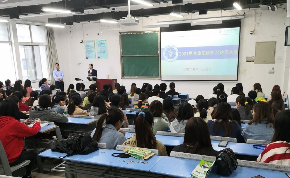 10月5日,动物医药学院2021届学生分为兽药企业、宠物医院、养殖场以及实验室四个方向的实习动员会分别在一号教学楼合301、合401、合501、合404召开。学院党委书记刘永录、院长宋予震、副院长汤法银、副院长李利红、副院长吴玉臣及相关老师、学生参加了会议。