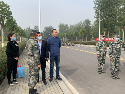 为深入了解新生军训开展情况,10月17日上午,我院党委书记刘永录、院党委副书记汪洋、以及2020级辅导员付文凯、谷茜茜和张曦臻前往军训场地看望慰问参训学生和承训教官。