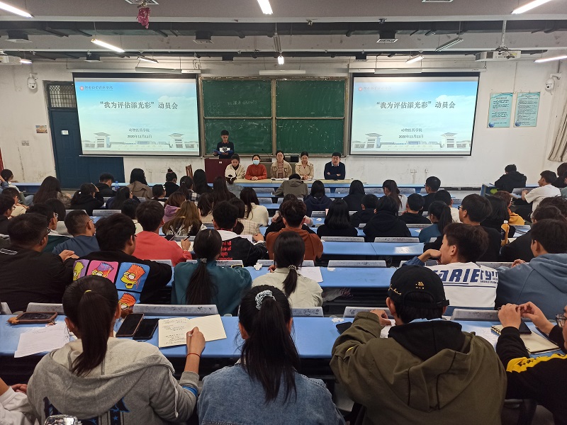 11月11日12:00,我院于1号教学楼合300教室召开主题为“我为评估添光彩”迎评工作动员会,学院团委副书记樊明明、聂丹,辅导员谷茜茜、付文凯、张曦臻与200余名学生干部共同参加了此次动员会。