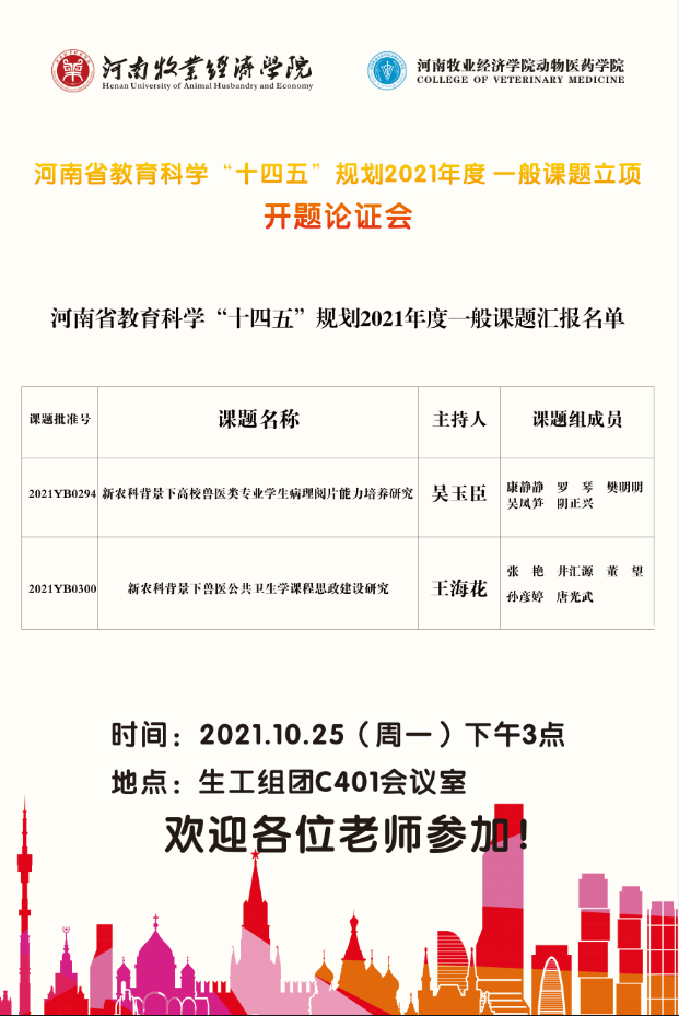 动物医药学院 河南省教育科学“十四五”规划2021年度一般课题立项开题论证会海报