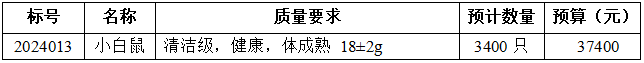 本次实验用小白鼠采购采用预算总额控制的形式,报价不得超过预算金额,数量以实际使用为准。