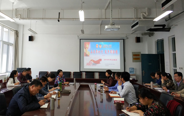 4月19日下午,在生工组团C401会议室,动物医学院特邀马克思主义学院形势与政策教研室主任吴新丽老师做了2018年“两会”解读,学院全体教师参加了本次理论学习活动。讲座由动物医学院党总支书记王春明主持。