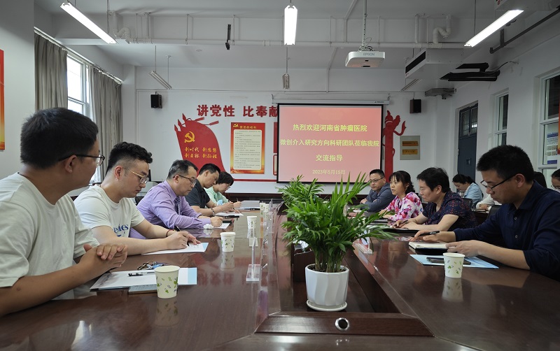 为推动学院科研技术创新,进一步提升科研水平,增强技术交流,促进科技成果转化,河南省肿瘤医院微创介入科主任医师胡鸿涛、副主任医师程洪涛、主治医师袁航、徐世君博士、张东阳医生一行到我院参加交流,畜产品质量安全技术研究院院长石冬梅、副院长江青东、发展规划处副处长皇甫和平、动物医药学院副院长李利红及相关专业教师参与交流活动。
