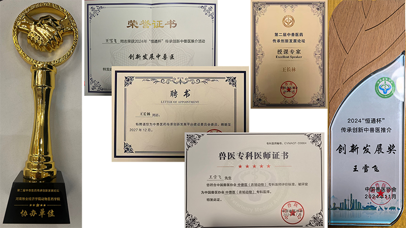 此次会议,聘任汤法银为中兽医药传承创新发展平台建设委员会副主任委员,王长林为中兽医药传承创新发展平台建设委员会委员。王雪飞获得“恒通杯”创新发展中兽医奖,并被聘任为中兽医(农场动物)专科委员会副主任委员。我院获得下届会议承办单位,即第三届中兽医药传承创新发展论坛将于2025年在郑州举行,由我校与河南农业大学等共同承办。