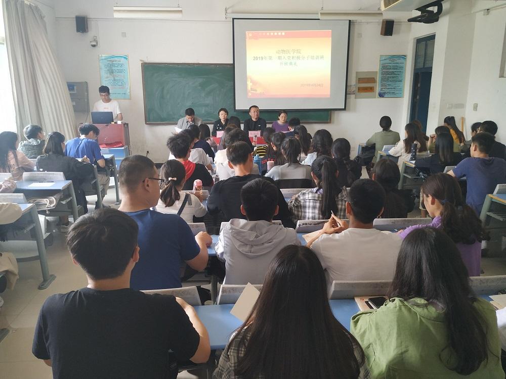 4月24日,我院在二号楼A205成功举办动物医学院2019年第一期入党积极分子培训班开班典礼。我院党总支书记王春明、副书记张瑞春、团总支书记王宏魁和辅导员老师们出席了本次开班典礼。典礼由吕玉金老师主持。