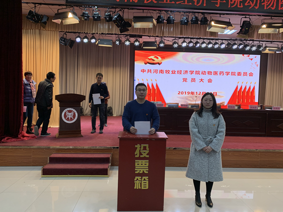 根据《中国共产党章程》《中国共产党普通高等学校基层织工作条例》《中国共产党基层组织选举工作暂行条例》和校党委统一部署,12月23日下午,中共河南牧业经济学院动物医药学院委员会党员大会在大学生活动中心召开,校党委书记穆瑞杰及学院全体教工学生正式党员共128人参加本次大会,会议由动物医药学院党委副书记汪洋主持。