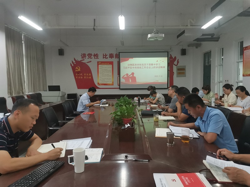为深入学习贯彻习近平总书记在中央统战工作会议上的重要讲话精神,把党内外各方面智慧和力量凝聚起来,以实际行动迎接党的二十大胜利召开。动物医药学院于2022年9月9日在善知楼B401组织党员干部集中学习习近平在中央统战工作会议上的讲话精神,会议由动物医药学院副院长吴玉臣主持。