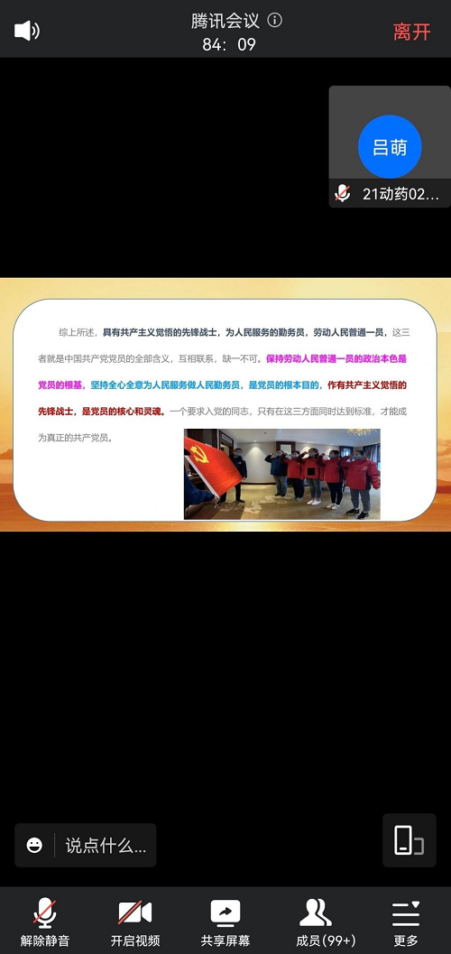 杜老师首先从党员条件的具体内容为入党积极分子们开展讲解。杜老师以起码条件、基本条件、具体条件三个方面使学员们明确了党员条件这一内容,在讲解过程中分享了获得共和国勋章的钟南山院士,以及获得“人民英雄”国家荣誉称号的张伯礼、张定宇、陈薇等人的英雄事例激励学员们自觉做共产主义远大理想和中国特色社会主义共同理想的坚定信仰者和忠实实践者,要刻苦读书,努力成为社会主义现代化的建设者和接班人。杜老师接着讲解了作为党员需要认真履行的基本义务,引导大家作为新时代的年轻人,要向楷模学习,领悟精神,付出于行动。特别是作为一入党积极分子要学思悟践、履职担当,脚踏实地,真抓实干,敢于担当责任。杜老师还指导大家正确行使党员权利,并总结党员义务与权利的特点使学员们充分了解共产党员的条件这一内容。