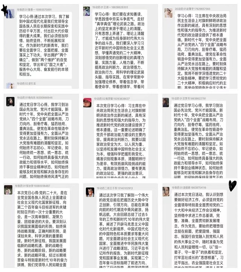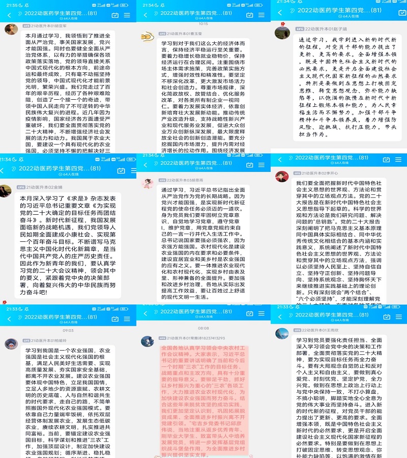 按照《关于开展2023年1、2月份党支部主题党日活动的通知》(校组〔2023〕1号)文件精神要求,各党支部书记带领党员们共同学习了《求是》杂志发表的习近平总书记重要文章《在二十届中央政治局第一次集体学习时的讲话》;深入学习了习近平总书记在二十届中央纪委二次全会上发表的重要讲话;深入学习了《求是》杂志发表的习近平总书记重要文章《为实现党的二十大确定的目标任务而团结奋斗》;深入学习了习近平总书记在中央政治局民主生活会上的重要讲话精神;认真学习了习近平总书记在中央经济工作会议和中央农村工作会议上的重要讲话精神;学习落实了《中共中央组织部关于推动基层党组织和党员在科学精准防控中更好发挥作用的通知》要求。会上,党员们纷纷表示:征程万里风正劲,行而不辍谱新篇。2023年是全面贯彻落实党的二十大精神的开局之年,我们必须以党的建设为统领,以习近平新时代中国特色社会主义思想为指引,深入学习贯彻党的二十大精神,坚定自觉向党中央看齐,形成一心跟党走、奋进新时代的良好政治局面。
