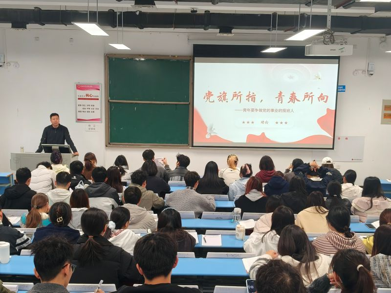 仪式结束后,胡卫东书记为本期入党积极分子带来党课培训第一讲——《党旗所指,青春所向》。他首先指出,“青年是整个社会力量中最有生气的力量”,并以我院优秀毕业生朱贺、孟庆泳为例——朱贺放弃创业扎根西藏高原,用足迹丈量桑玉村的土地;孟庆泳坚守新疆边疆六载,以技术扶贫助民脱贫、参与抗疫救灾。他们在基层绽放青春,彰显了青年的蓬勃力量与责任担当。接着,胡书记强调,青年要始终做跟党走的先锋,牢牢铭记“党旗所指即青春所向”。正如我校学生党员志愿服务队,在各项关键任务中冲锋在前、勇挑重担,用实际行动为入党积极分子树立了可学可做的榜样。最后,胡卫东围绕“让青春在党和人民的事业中绽放绚丽之花”展开,勉励大学生深耕专业知识,主动投身社会实践,将所学所长与实际需求结合,以实干诠释担当,让青春在奋斗中闪光、在奉献中升华。