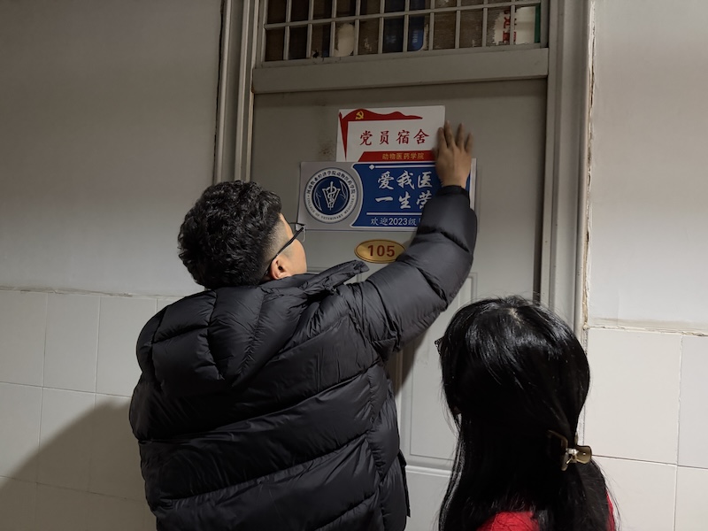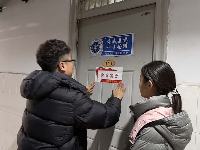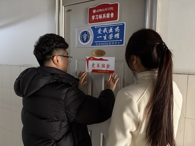 一面旗帜,引领方向;一间宿舍,彰显担当。为深入落实“一站式”学生社区建设要求,切实增强学生党员的身份意识、责任意识与先锋模范意识,推动党建力量下沉至学生生活的最小单元,动物医药学院开展了庄重而富有意义的“党员宿舍”挂牌活动。活动旨在让党员身份在生活空间“亮出来”,让模范作用在同学身边“实起来”,让党的旗帜在学生社区“扬起来”。