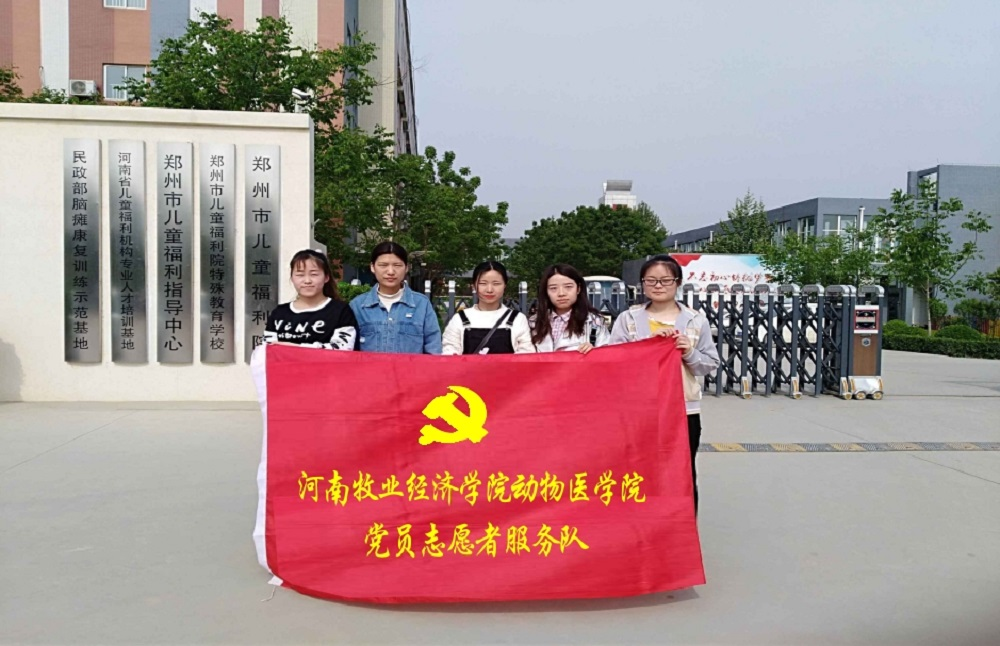 4月20日,动物医学院组织在校党员组成党员志愿者服务队,到郑州市儿童福利院送温暖,献爱心,做志愿服务活动。