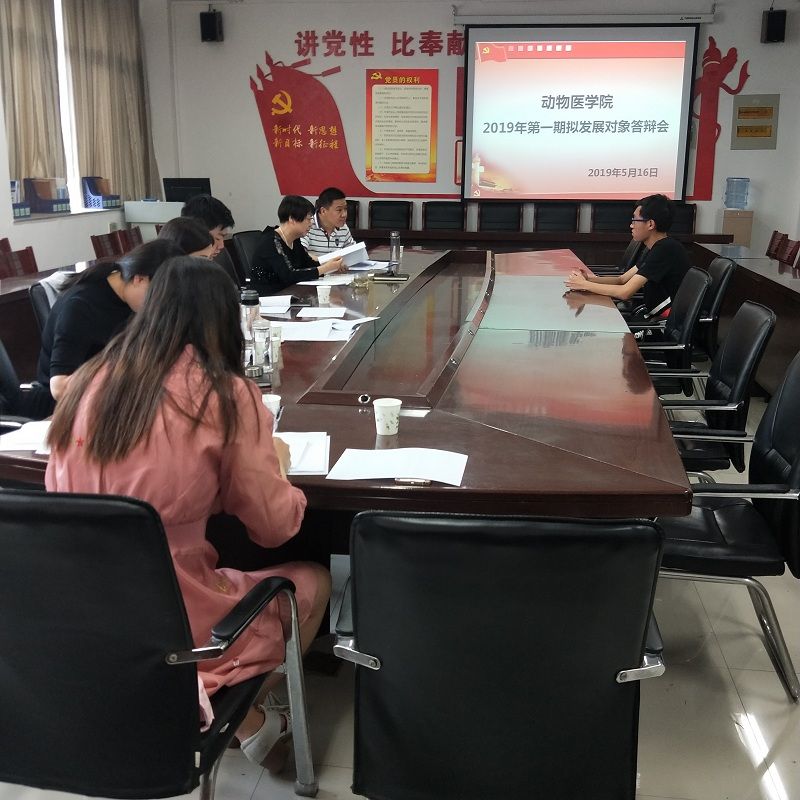 5月16日在龙子湖校区生工楼C401举行了“2019年第一期拟发展对象答辩会”。动物医学院党总支书记王春明、第一学生党支部王宏魁、聂丹、张丽老师,第二学生党支部樊明明、付文凯老师担任此次答辩评委,各班拟发展对象共31名同学参与本次答辩。