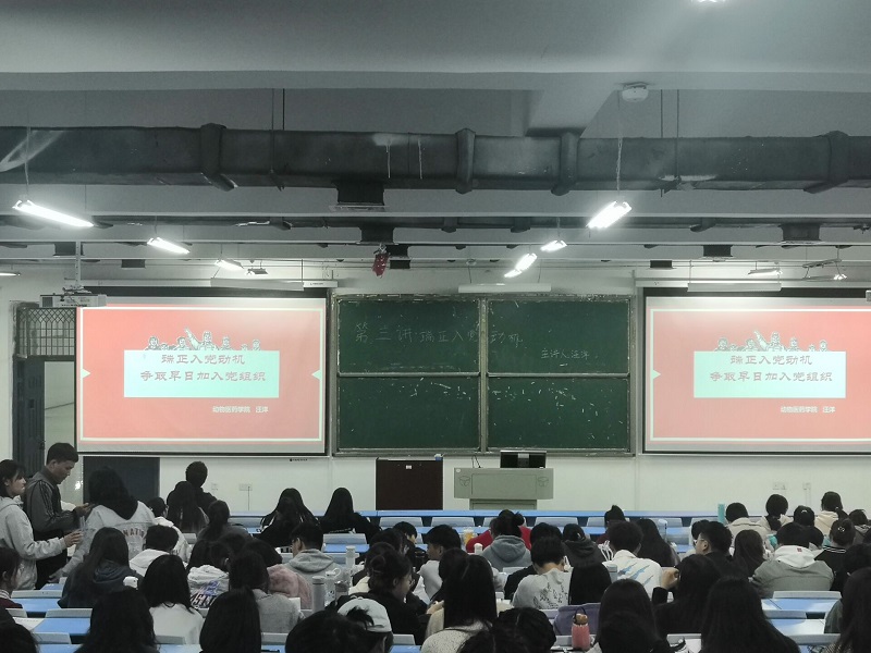 为端正同学们入党动机,做一名合格党员,进一步加强思想建设。我院于10月19日晚19:00,在1号教学楼合300开展《端正入党动机,争做合格党员》党课培训。本次党课由动物医药学院党委副书记汪洋主讲。