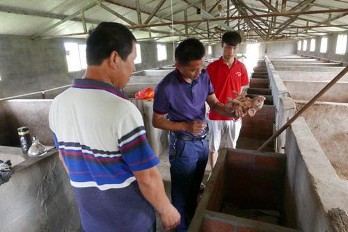 两位老师深入猪舍现场指导