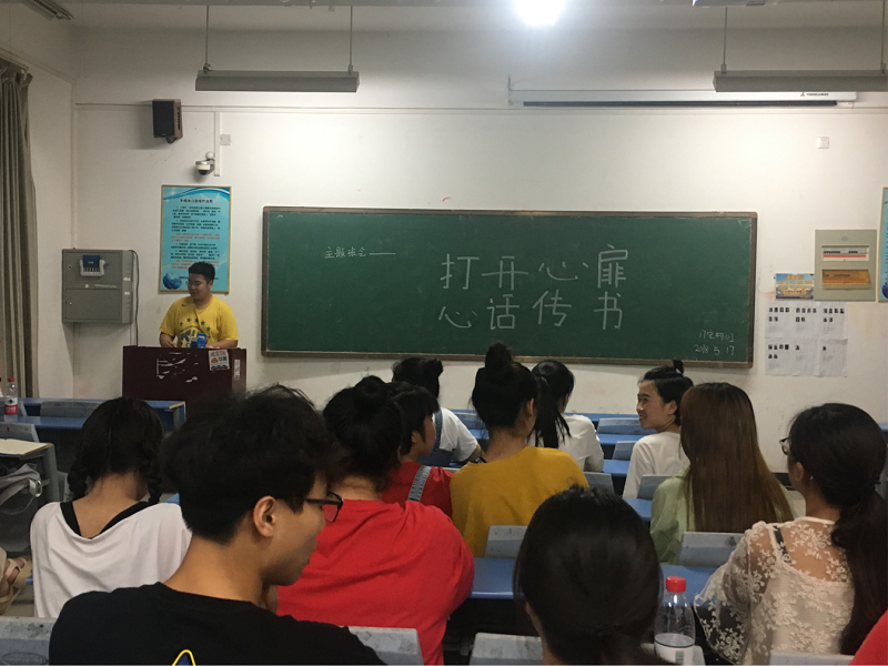 5月6日至5月12日,我院17级各班相继开展了以“打开心扉,心话传书”为主题的心理健康交流班会,通过这样的班会活动,同学们打开了心扉,互相交流,营造出健康和谐的班级氛围。