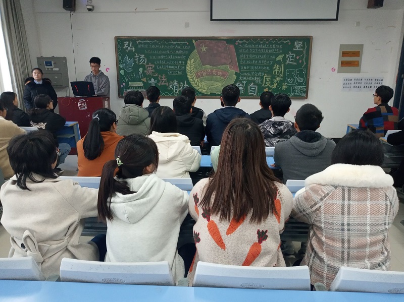 12月5号下午2:30,我院组织19级学生于各班固定教室开展“弘扬宪法精神,坚定制度自信”为主题的团课活动。
