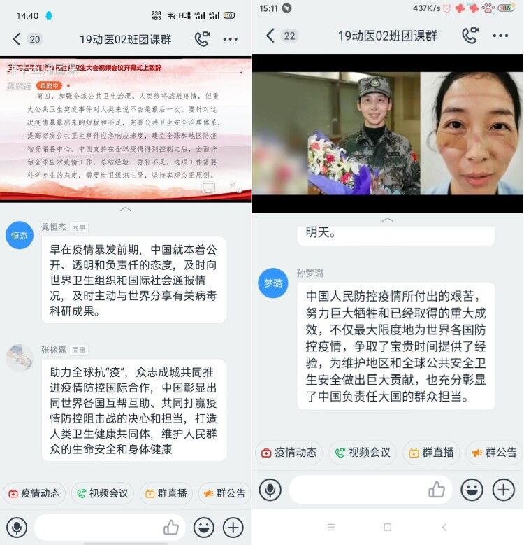 2020年5月21日,下午2:30至4:00,我院组织19级各班在钉钉团课群中开展以“携手抗疫显大国担当,勇担使命展青春风采”为主题的团课学习活动。