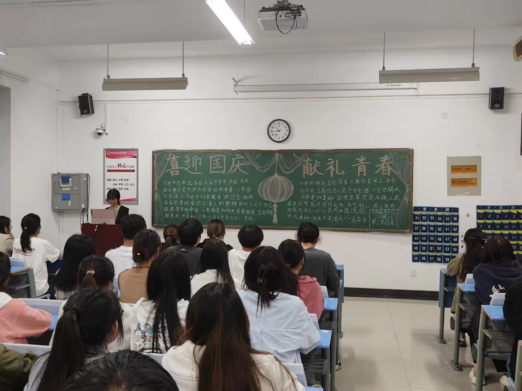 在团课开始前,各班努力搜集相关资料,绘制黑板报,合理分配工作,为团课的成功展开做了充分准备。团课伊始,主持人通过PPT演示让同学们了解党领导中国青年运动的光辉历程,使同学们对在中国共产党领导下取得的历史性成就和发生的历史性变革有了更加直观的认识。同时还讲解了不同时代的英雄事迹,激发同学们的爱国之情。随后,通过观看经典红色电影,使广大青年学生感悟初心、勇担使命,凝心聚力、接续奋斗。接着,主持人带领着大家一同朗诵经典美文,以文字为载体,以语言为力量,有声表达对祖国母亲的祝福。在团课的最后,各班主讲人再次强调了本次团课的主题,并号召所有青年艰苦奋斗,强我中华,勇担时代重任,用实际行动践行爱国主义,为祖国的繁荣富强奉献青春力量。