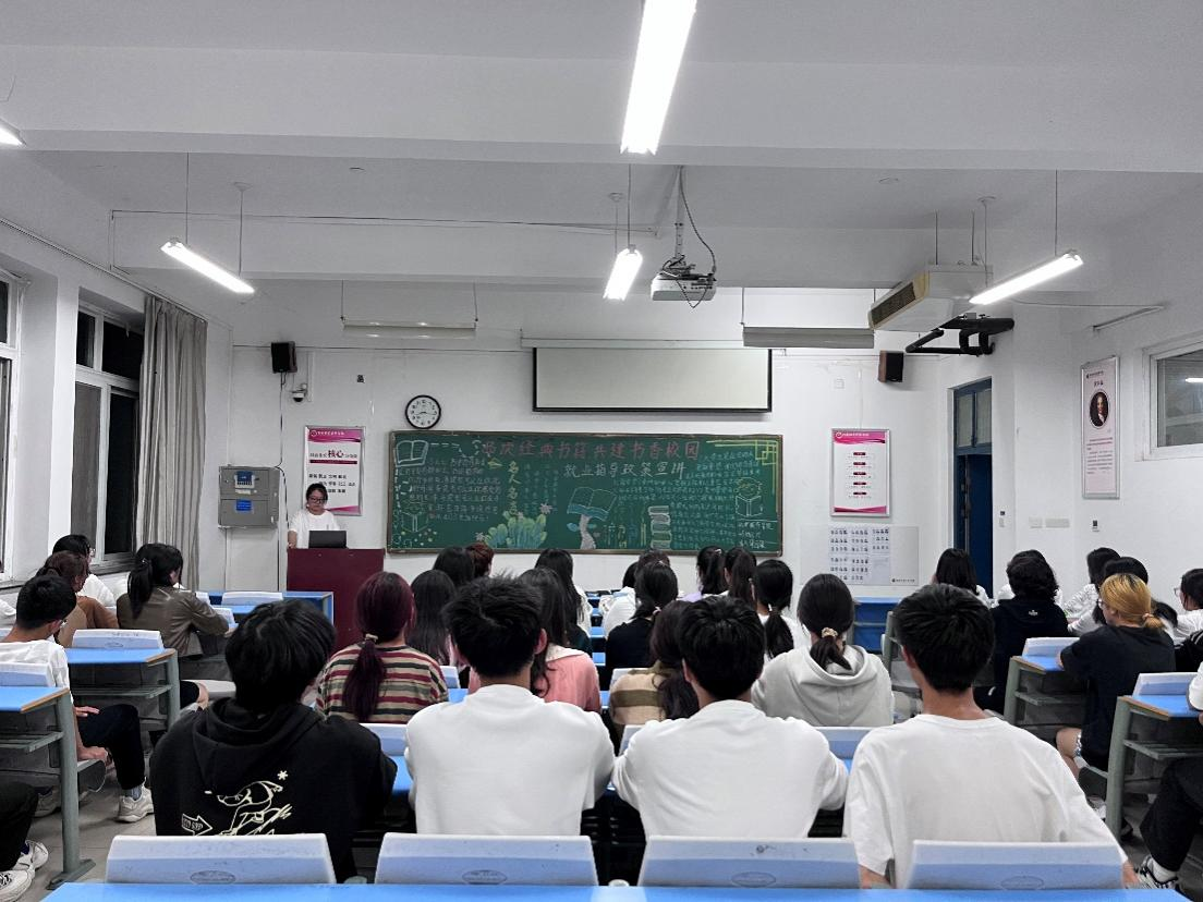 为认真落实校图书馆“新时代校园阅读季”阅读推广活动,积极响应共青团中央实施“共青团促进大学生就业行动”工作,用科学的方法引领同学们学思践悟,知行合一,树立理性平实的择业观,就业观,2023年11月2日,动物医药学院组织2023级青年团员开展以“书香氤氲溢校园,就业指导引未来”为主题的团课活动。