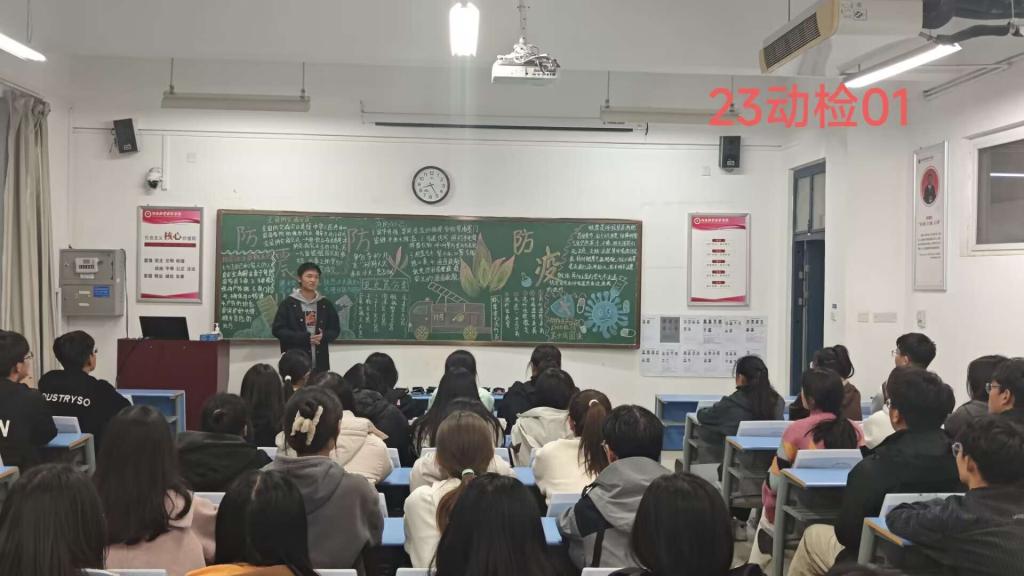 为全面贯彻落实“119消防宣传月”,应对传染病高发的秋冬季节,做好防火防疾安全宣传教育工作,不断提升全体师生消防安全素质和忧患意识,谨防传染病的大范围传播,2023年11月9日,动物医药学院组织2023级青年团员开展以“防火防疾,生命至上”为主题的团课活动。本次团课分两个阶段。第一阶段以“强化消防安全,共筑平安校园”为主题,主持人通过对每年火灾案例的分析和对消防安全制度学习,强调了消防安全的重要性和必要性。接着,主持人通过展示消防器材及其使用方法,普及火灾来临时的逃生指南,要求同学们重视消防安全知识的学习和提高对火情的警觉意识。第二阶段以“预防传染病,守护身心健康”为主题,首先主持人列举出几种秋冬常见传染病以及其传染途径和发病症状。随后,通过分小组讨论的方式,分析如何有效预防这些传染病。最后,主持人总结了几点防止传染病传播的要点,并建议同学们多喝水多锻炼,加强身体素质,戴口罩勤通风,提高防范意识。