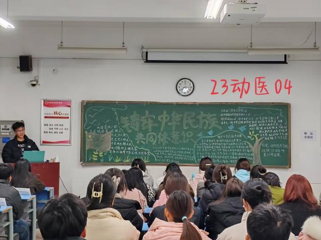 为增强青年的政治自觉、思想自觉和行动自觉,在共有精神家园中厚植对中华民族的认同感,铸牢中华民族共同体意识,担起肩上的责任与使命,2023年11月30日,动物医药学院组织2023级青年团员开展以“铸牢中华民族共同体意识”为主题的团课活动。