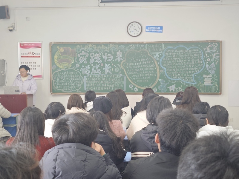 团课伊始,主持人通过精心制作的PPT向同学们展示社会实践的丰富形式、重要意义以及诸多优秀案例,让同学们对社会实践有了系统认识。随后,一些寒假实践照片吸引了全场目光,照片里,同学们深入社区服务、参与环保公益、投身企业实习等精彩瞬间被一一呈现。与此同时,几位在实践中表现出色的学生代表依次上台发言,他们结合自身经历,真挚地讲述了在实践中遇到的挑战与挫折以及如何凭借坚持与智慧将其一一克服、实现自我成长与突破的历程。台下同学深受触动与鼓舞,在讨论交流中相互学习、共同进步,并纷纷表示:通过这次活动,他们更加明确了实践的意义和成长的方向。最后,主持人指出社会实践是大学生接触社会、了解国情的重要途径,也是培养责任感、提升综合素质的有效方式,并鼓励同学们积极参与社会实践,在实践中增长才干、锤炼品格。
