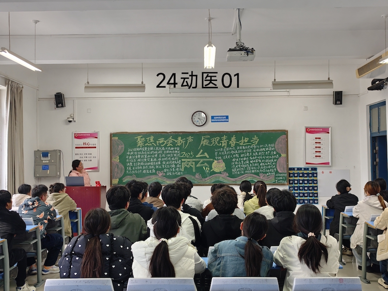 为深入学习贯彻习近平总书记在2025年全国两会期间的重要讲话精神,明晰时代发展脉络,强化思想政治引领,2025年3月13日,动物医药学院组织全体团员青年开展以“聚焦两会新声,展现青春担当”为主题的团课活动。