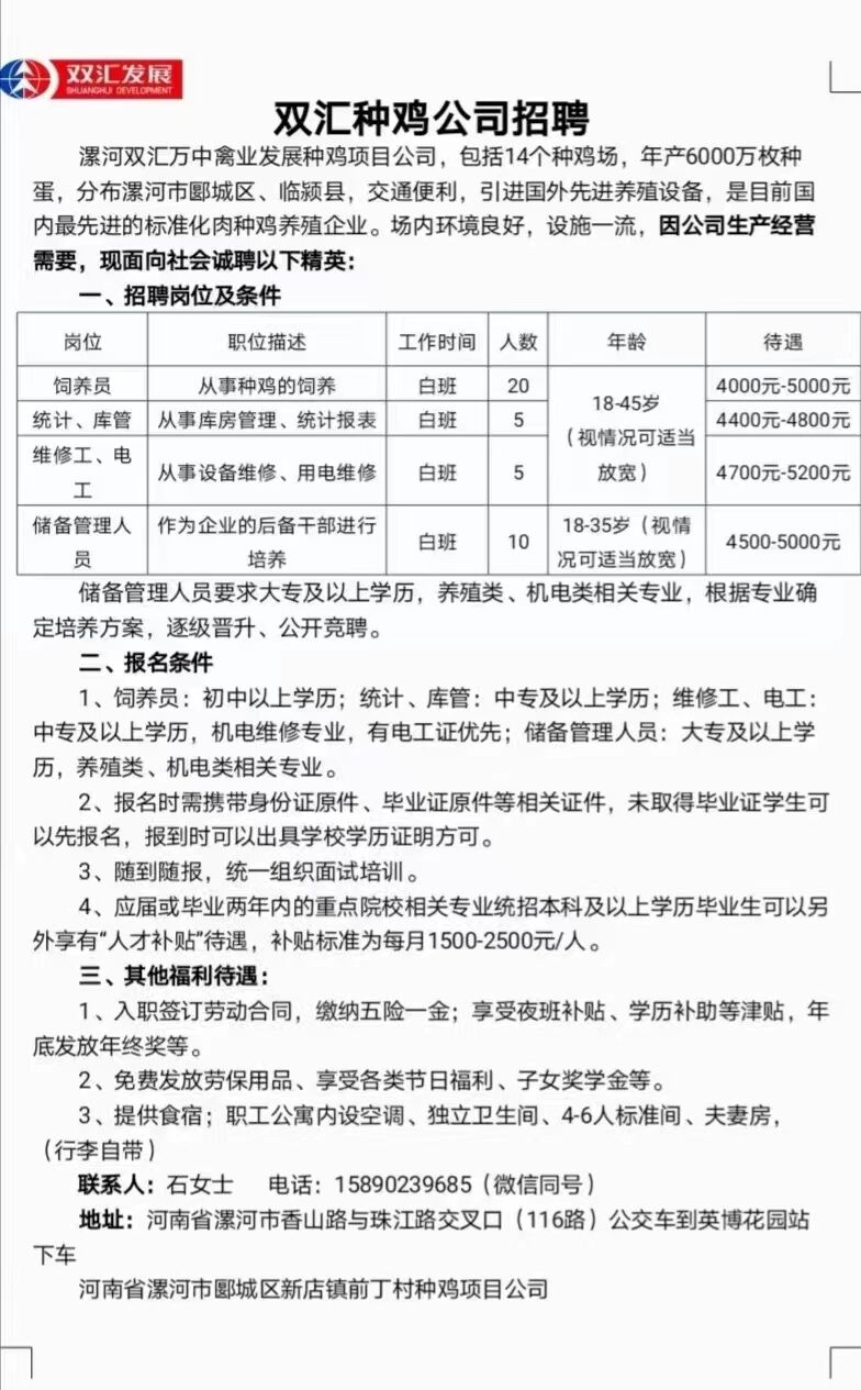 双汇种鸡公司招聘