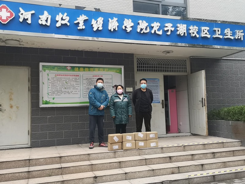 4月2日上午,我院2018级宠物医学专业学生亓凯旋同学向学校捐赠了一批消毒液。由于疫情防控要求,由学院工会主席、学生班主任霍军老师和团总支书记王宏魁老师代亓凯旋同学捐赠,学校校医院王春霞大夫代表校医院接受了该批物资。