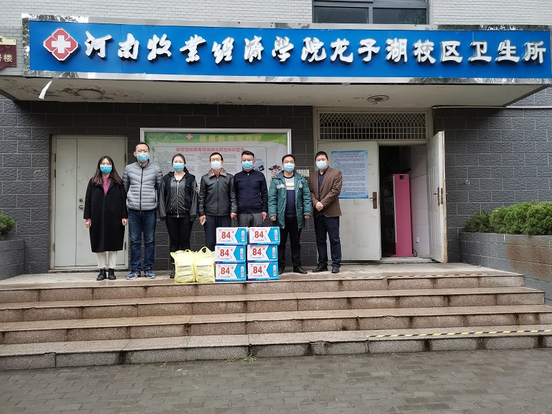 4月10日上午,动物医药学院2017级宠物养护01班学生杨笑莹向学校捐赠消毒液、口罩一批,我院党委书记刘永录、党委副书记汪洋、团总支书记王宏魁及辅导员樊明明协同校医院程占彪大夫共同代表校医院接受了该批捐赠物资。