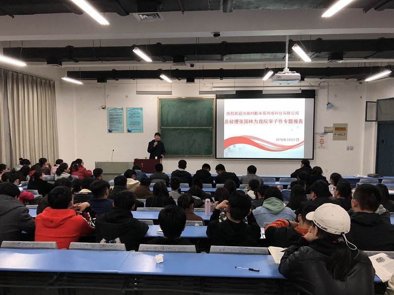 3月21日19:00,我院2008级优秀毕业生张国林,现任河南时酷来客网络科技有限公司总经理于合302教室为学弟学妹作主题为《大学这几年,你将怎么过》的报告会。我院团总支书记王宏魁老师和160余名学生共同聆听了报告会。