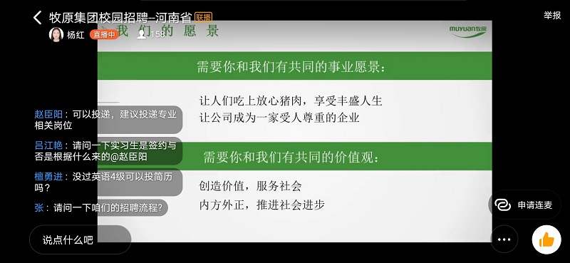 4月29日下午五点,动物医药学院组织毕业生参与了牧原食品股份有限公司的线上宣讲会。